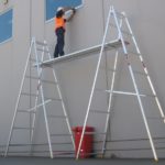 You could do it the old ‘ladder and timber’ way, or you could do it the faster and safer SafeSmart way. Save money, potential injury downtime from failing timber options, and get the job done fast and easily with SafeSmart’s A-Frame Trestle and plank combinations.