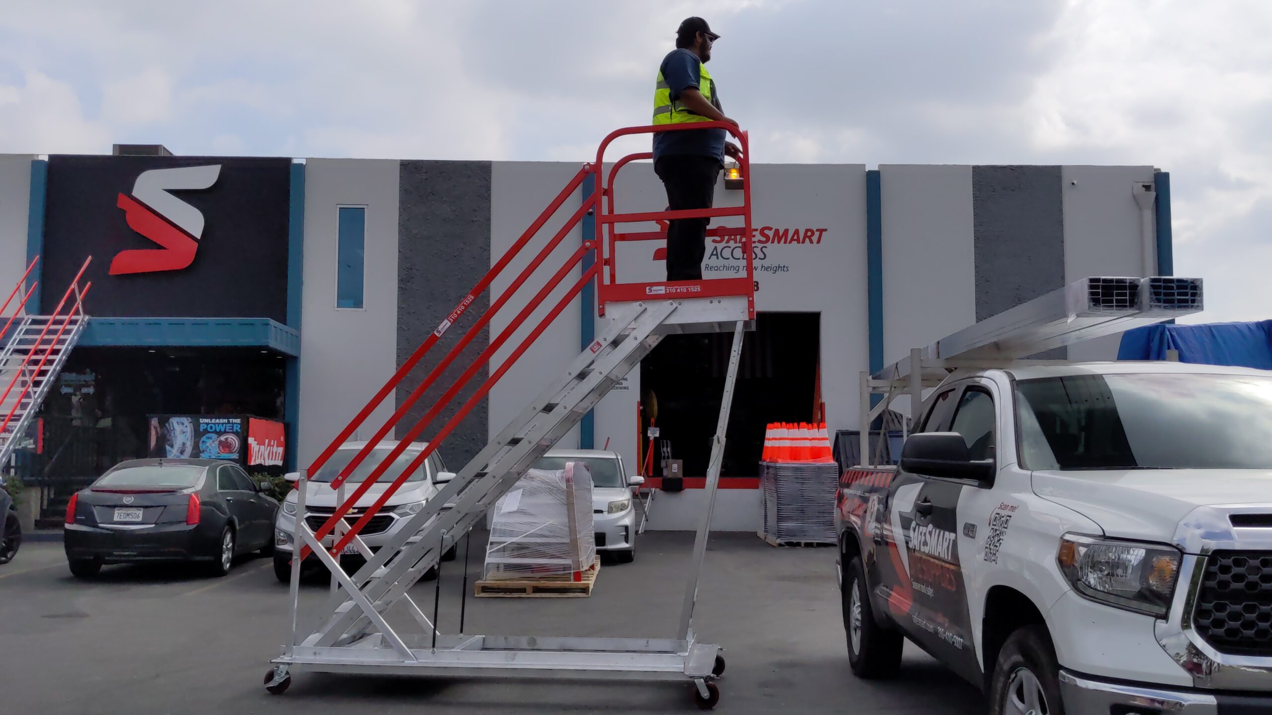 The AdjustaStairs with chassis system, optionally equipped with custom gates on either side, makes temporary access and maintenance easy.