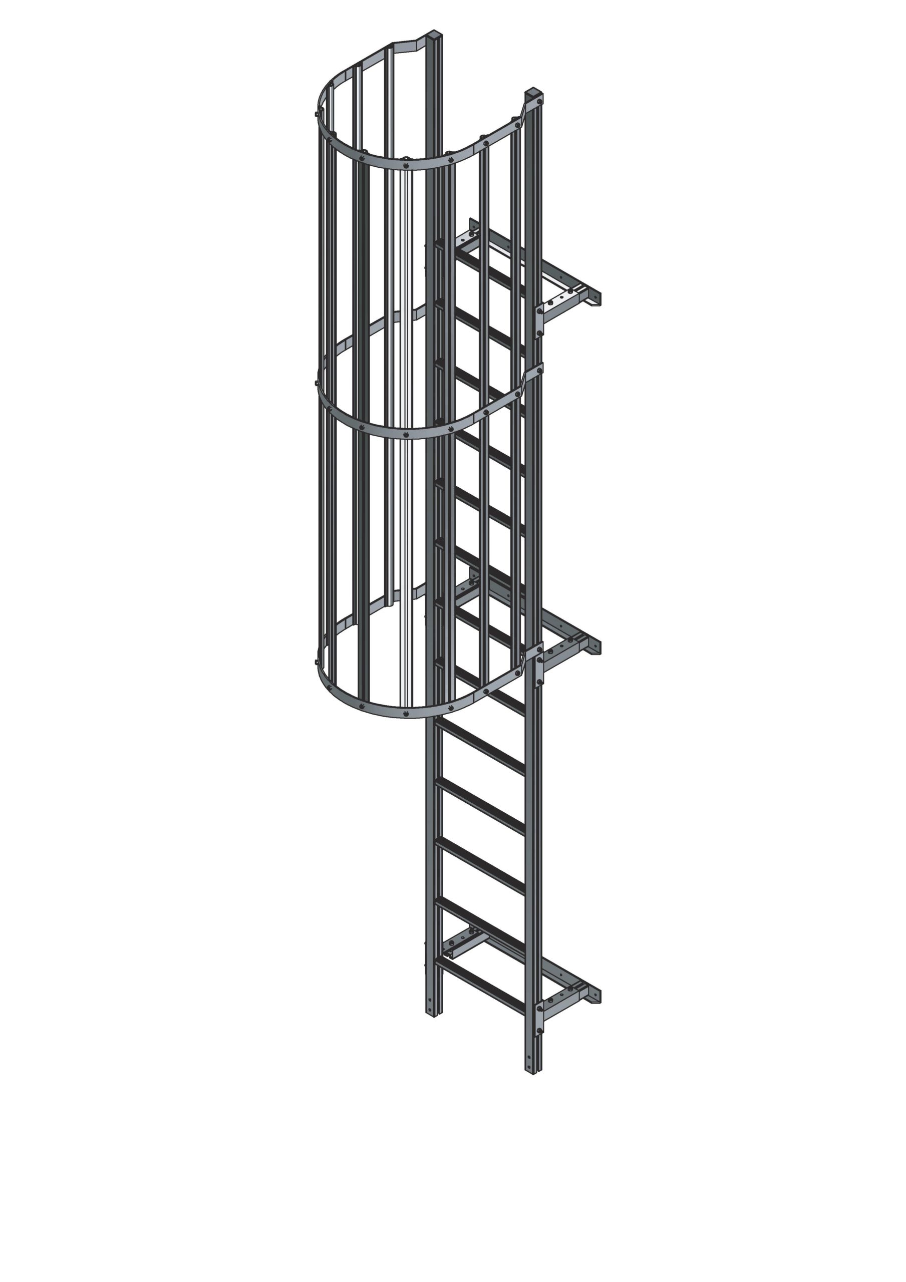 a. To comply with Australian Standards, the cage of the ladder needs to be positioned so that there is 7′ of clearance between the bottom of the cage and access surface that personnel will be using to get onto the ladder. This is to ensure head height clearance for the user.