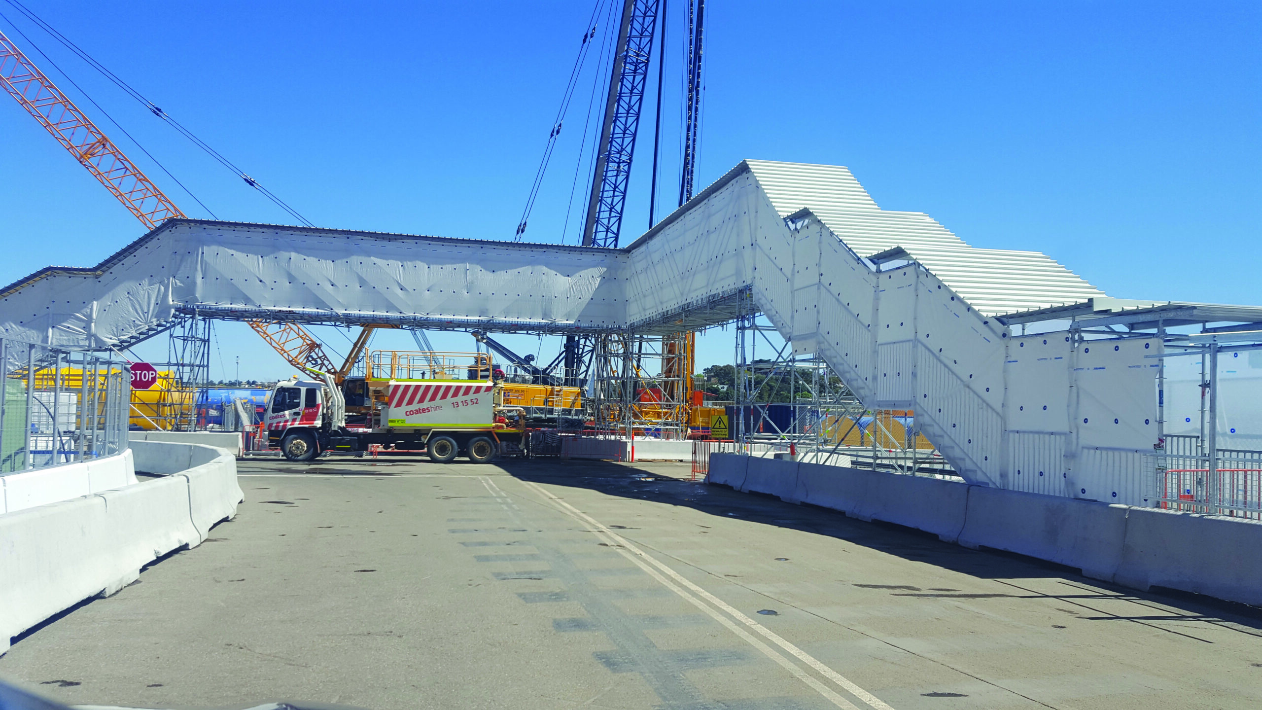 Where on-site access is required over obstructions or roads and walkways, Proscaf is used to provide a pre-engineered, compliant solution – without the requirement for external components such as heavy support beams.