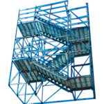 Made from SafeSmart’s very own steel Proscaf, this scaffold tower system saves time and money on site pre-assemble off site and simply crane the pre-erected tower into position, thanks to its certified lifting points. Two configuration options accommodate either stretcher stairs (52’6″) or our Z stairs (65’7″ height).