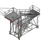 This platform gives the maintenance and fabrication teams the ability to access straight into the back of trays for general fabrication works, re-lines or major repairs. With the adjustability of the platform, this means that it can reach not only numerous tray heights but also accommodate for a number of tray widths. This platform eliminates the need to erect a scaffold every time this work needs to be completed, meaning that the platform can be rolled straight into place, reducing down-time for the onsite teams.