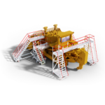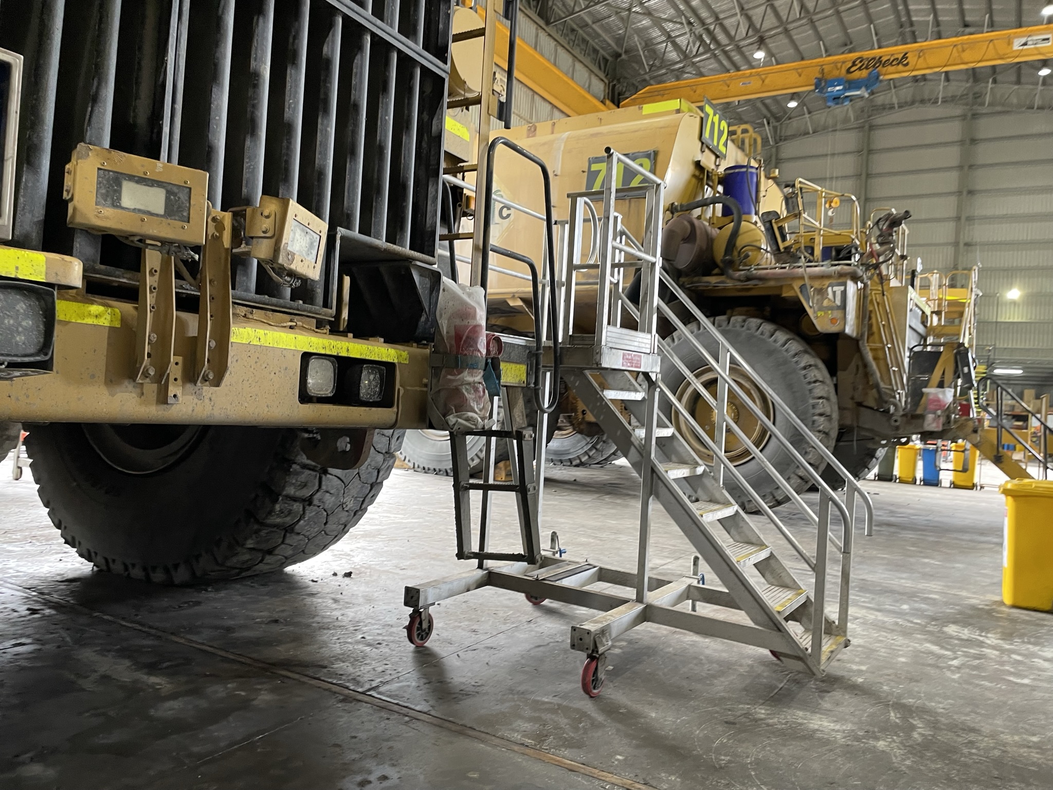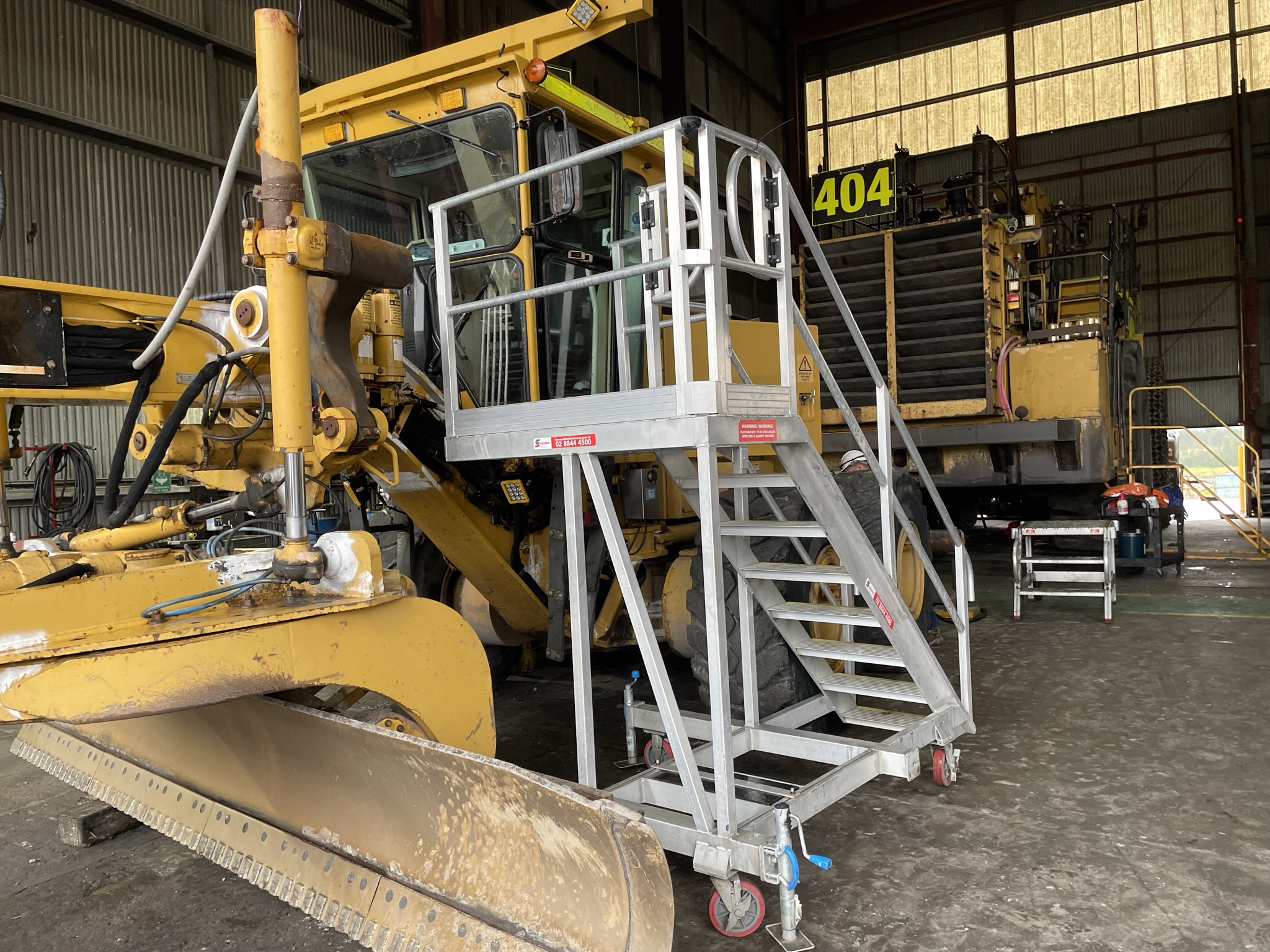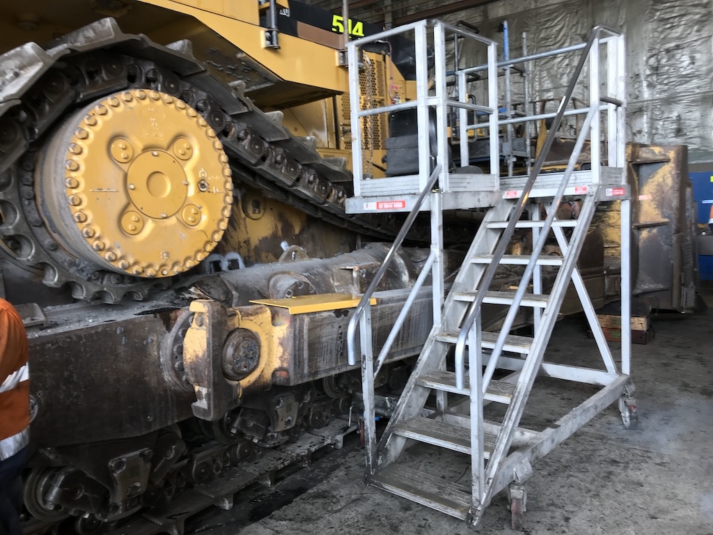 This platform was designed with the restricted space in mining workshops, in mind. With a side cantilever that allows access over the push arm to the dozer track, this design provides perfect access and egress to the engine bay. Supplied in a LH and RH combination also allows for complete access during breakdowns, strips, rebuilds and general repairs.