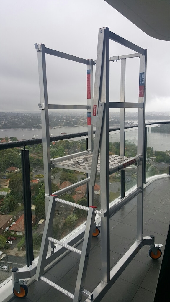 A podium Platform with Extra Room for quick and easy deployment in narrow, indoor, or confined spaces. Inspect, work, and maintain with this nifty platform.