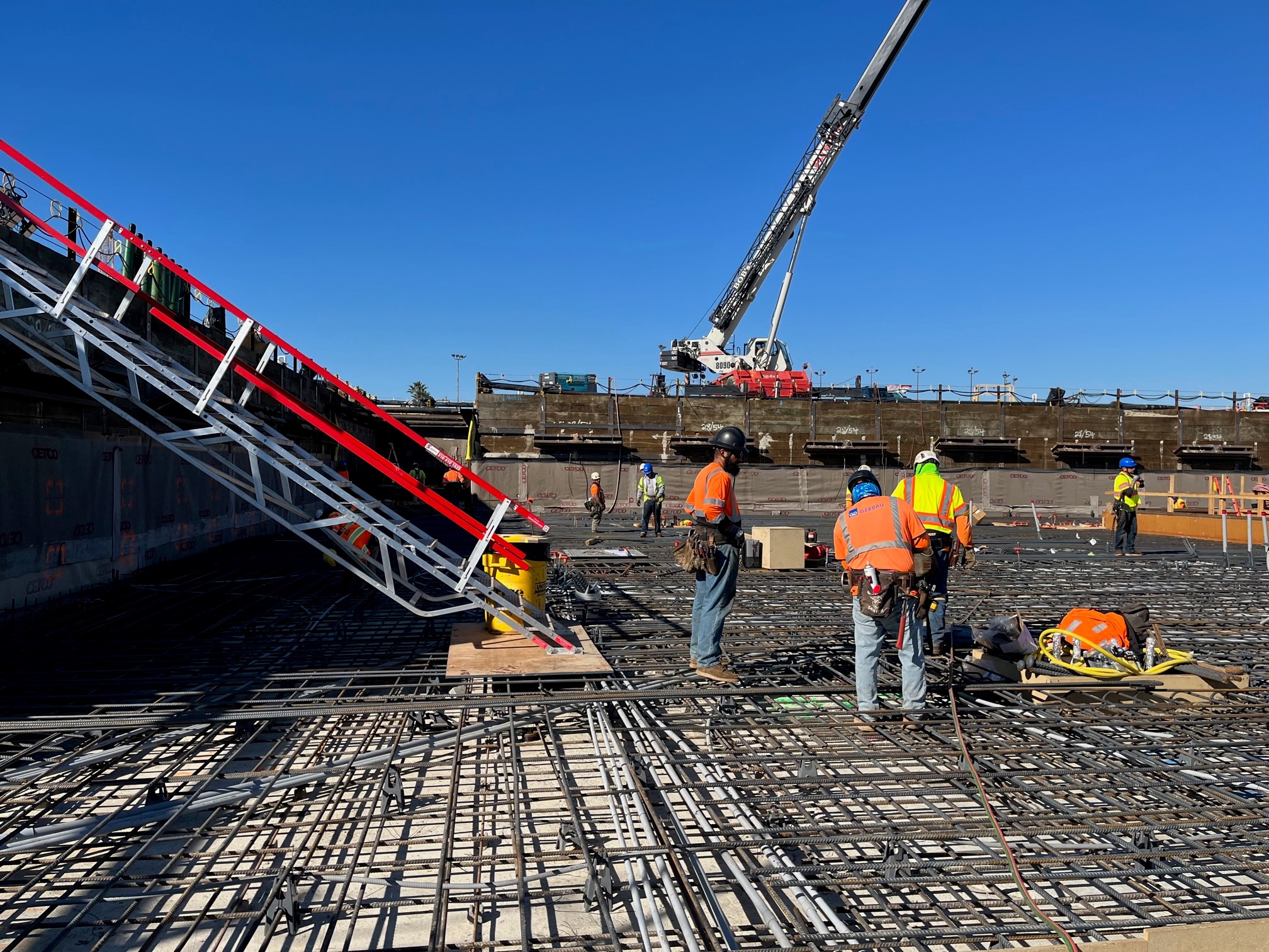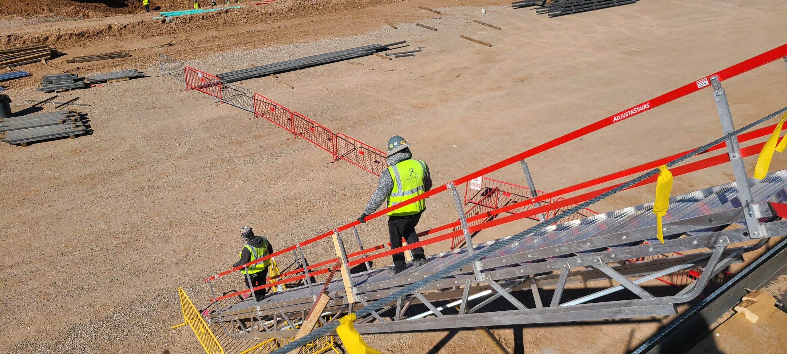 At 1200 mm (48″) in width, these AdjustaStairs allow two-way access and egress, so workers are not waiting at either end for another person to finish scaling the system. And a hefty weight rating of SWL 2.5kPa, and a big truss underneath, allows these multiple workers to be safely carrying tools with their spare hand.