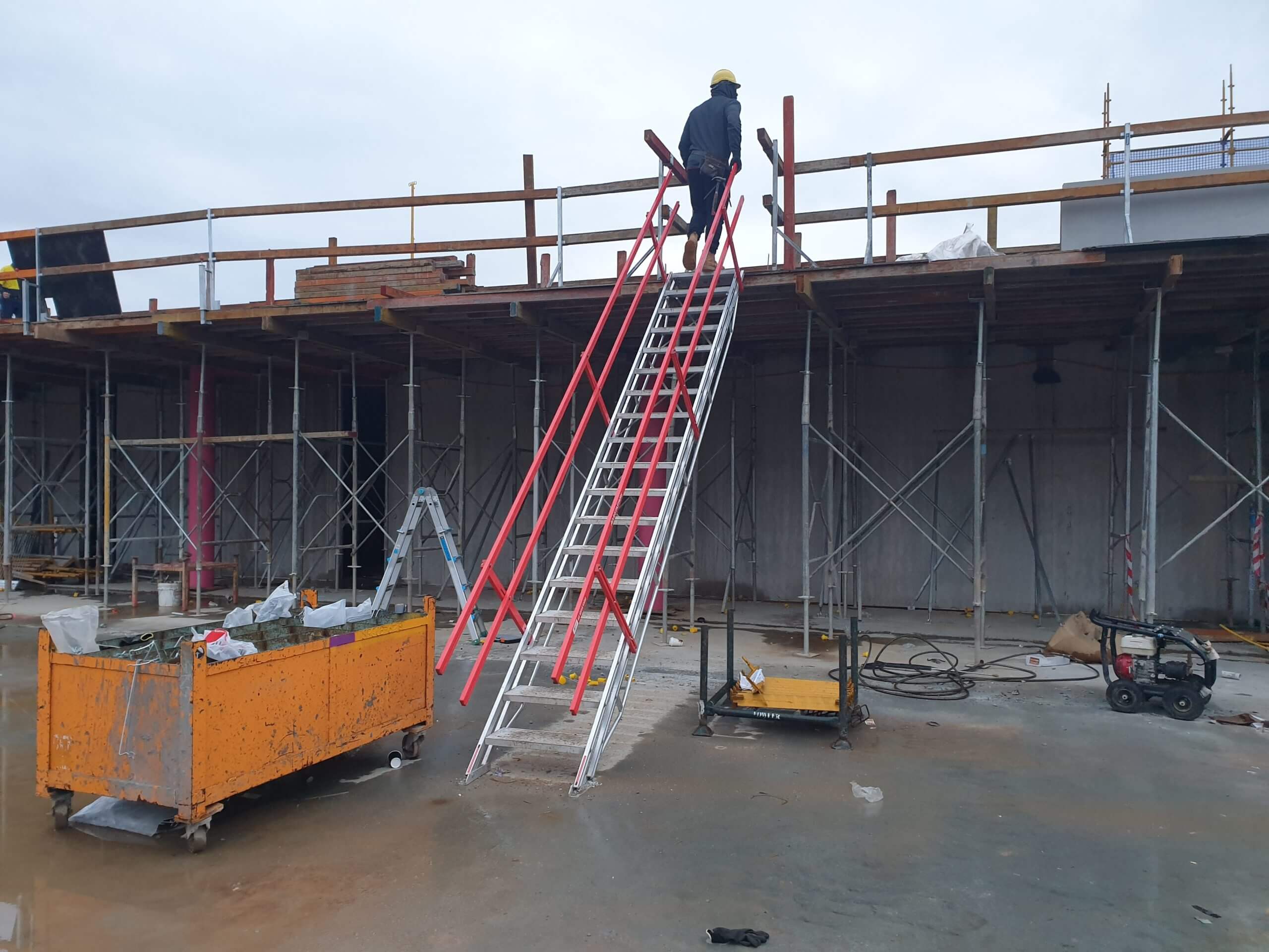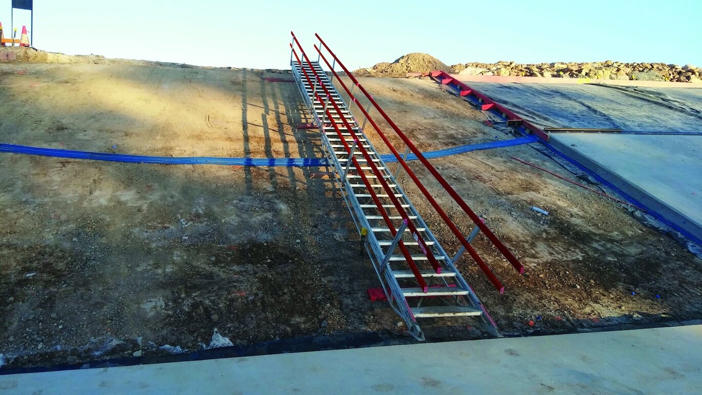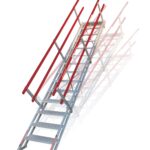 Self-levelling portable stairs allow for a variance of pitch angles and aluminum constructions means a combination of strength and easy portability. And a 600mm (24″) width, allows a worker to ascend the stairs with a hand free for tools.