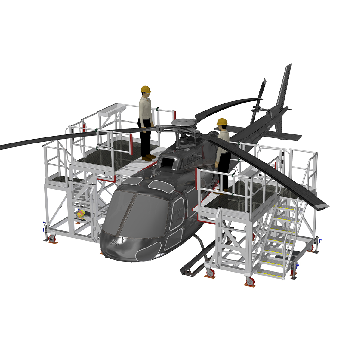 Engineered for the demands of modern helicopter maintenance, the RotoReach platform redefines safety, efficiency, and proximity access in aviation environments. Purpose-built for rotary aircraft applications, RotoReach gives technicians a stable, OSHA-compliant platform that brings them closer to critical components—without compromising maneuverability or site flexibility.