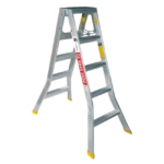 The Warthog automatically locks when opened, and smoothly expands and contracts to reduce the possibility of finger jamming. The non-clogging hinge opens wider to allow debris like dirt and plaster to easily fall away. Weight rated at a hefty 396lbs and fully welded box aluminium construction, this ladder will not twist, and will last for many years of use and abuse. Various step count configurations from 3 to 6 step available.