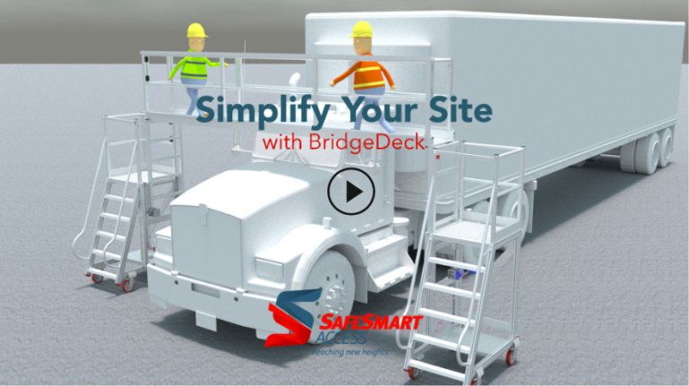 SafeSmart’s AdjustaStairs temporary stairs give you fast and safe height access that is as effective as permanently-installed stairs. They are quickly and easily deployed by one or two people, and can accommodate a range of pitch angles, thanks to self-leveling stair treads. And for easy removal and redeployment to another location, AdjustaStairs’ collapsible handrails provide compact portability.